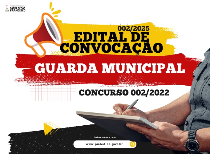 O município de Barra de São Francisco publicou edital convocando os candidatos aprovados no concurso público para o cargo de guarda municipal, a fim de que assumam suas respectivas vagas.