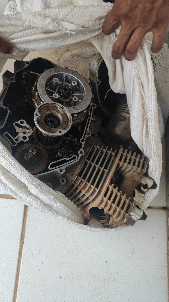 Na varredura interna, foram localizados ainda uma TV Panasonic e um motor de motocicleta dentro de um saco branco. Consulta ao sistema Autua confirmou que o motor pertence a uma Honda CG 150 Titan vermelha, placa MRA-5171, veículo com registro de furto datado de 24/04/2025 no município de Águia Branca.