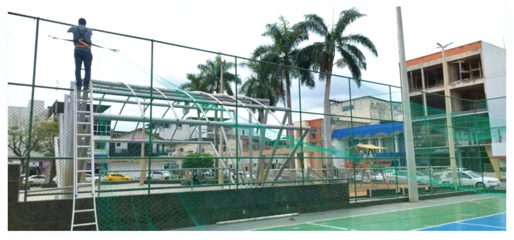 Segundo a equipe técnica responsável, a rede é confeccionada em nylon de alta resistência, suportando exposição ao sol e à chuva. Com dimensões de 20 por 30 metros e largura ampliada, a nova instalação proporciona maior área de cobertura e proteção, garantindo mais tranquilidade para quem utiliza ou transita pelo espaço público.